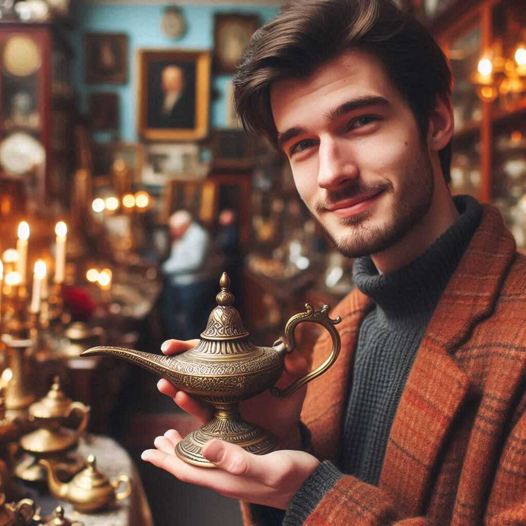 Art browsed through the bric-a-brac on the crowded, dusty shelves in the old antique store, finding little of interest. He spotted an odd-looking object tucked away in the back that looked like a little metal pitcher with a handle and...